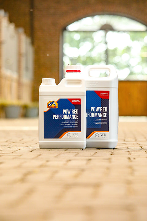 To prepare horses for the competition season and support them during peak times, there is Cavalor Pow’Red Performance. This liquid feed supplement is packed with vitamins , minerals, and trace elements.